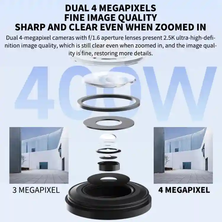 هر دو لنز این دوربین دارای سنسور ۴ مگاپیکسلی با دیافراگم بزرگ f/1.6 هستند. این ترکیب یعنی تصاویری با رزولوشن 2560×1440 که حتی هنگام زوم کردن روی چهرهها یا پلاک خودروها، جزئیات را تار نمیکند. دیافراگم باز باعث میشود نور بیشتری جذب شده و تصاویر در شب شفافتر باشند.