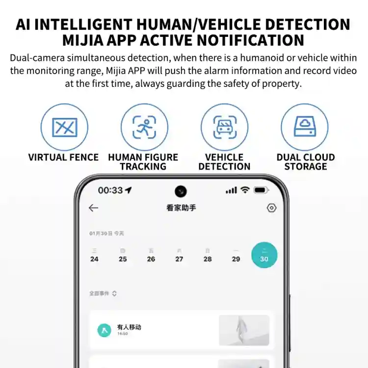 | ویژگیهای هوشمند | تشخیص انسان/خودرو، ردیابی سوژه، صدای دو طرفه، سازگار با Alexa/Google Home |