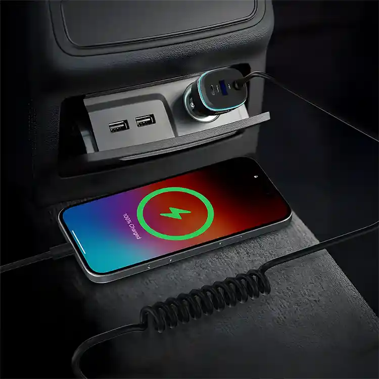 به لطف دو خروجی ۴۵ واتی (یکی پورت و دیگری کابل)، شما میتوانید مکبوک ایر (MacBook Air) یا لپتاپهای اولترابوک که از شارژ Type-C پشتیبانی میکنند را به راحتی در ماشین شارژ کنید. دیگر نگران تمام شدن شارژ لپتاپ قبل از رسیدن به جلسه نباشید.
