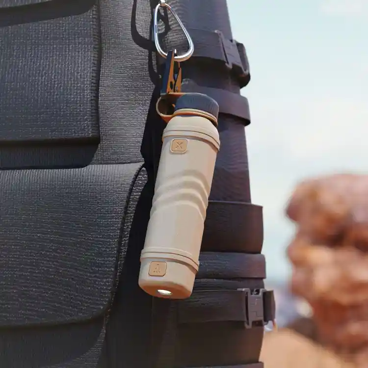 کارابین فلزی داخلی روی دستگاه به شما اجازه می‌دهد آن را به کوله‌پشتی، کمربند یا تجهیزات سفر متصل کنید.