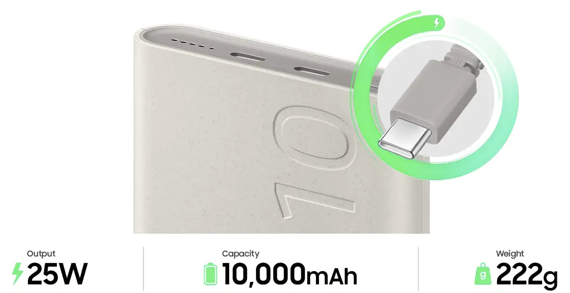 | ویژگیهای اصلی | • خروجی شارژ بیسیم (سازگار با گوشی، بادز و ساعت هوشمند گلکسی)<br>• شارژ سریع سیمی ورودی و خروجی (SFC) با حداکثر توان 25 وات |